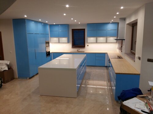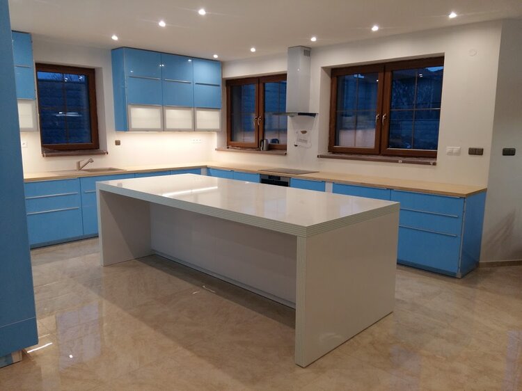 Zde se snoubí individualita s elegancí a praktičností. Tato kuchyně je zcela přizpůsobena přáním našeho klienta, který si přál modrou barvu dvířek pro svůj jedinečný prostor.Modré dvířka dodávají kuchyni živý a svěží vzhled, zatímco lesklý korpus zajišťuje moderní a elegantní povrch, který odráží světlo a opticky zvětšuje prostor.Ostrůvek představuje centrální bod této kuchyně, poskytující nejen dostatek pracovní plochy, ale také místo pro pohodlné vaření a společné setkání s rodinou a přáteli.Montáž této kuchyně zahrnuje nejen samotnou instalaci, ale také připojení vody a elektřiny, což zajišťuje bezproblémový a pohodlný proces od počátku až do konce.Kuchyně v Libni je skvělým příkladem toho, jak může být každý kuchyňský prostor individuálně přizpůsoben podle potřeb a přání klienta, aniž by byla ztracena estetika a funkčnost.